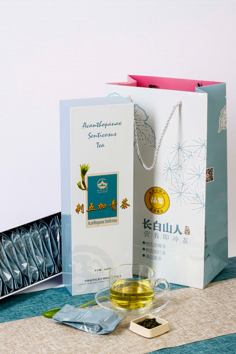 【产品详请】:长白山人牌刺五加青茶选取长白山刺五加嫩叶,运用传统制茶工艺与现代加工方法相结合,经多道工序制作而成。